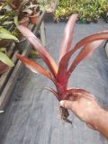 Bromélia epífita, de cor vibrante, Aprecia substrato de boa drenagem. devido ao seu formato verticalizado e sua cor, combina bem em arranjos pendurados.