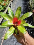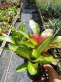 Bromélia epífita, aprecia substrato fibroso e luz indireta de muita intensidade. Produz estolos médios formando belos arranjos.