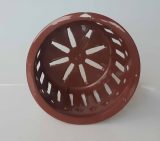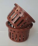 Vaso em plástico resistente, bem furado, o que propicia um ótimo arejamento das raízes das epífitas. Leves, podendo ser pendurados (hastes não inclusas) ou apoiados na bancada.
